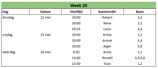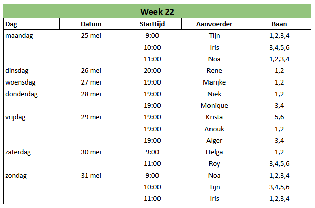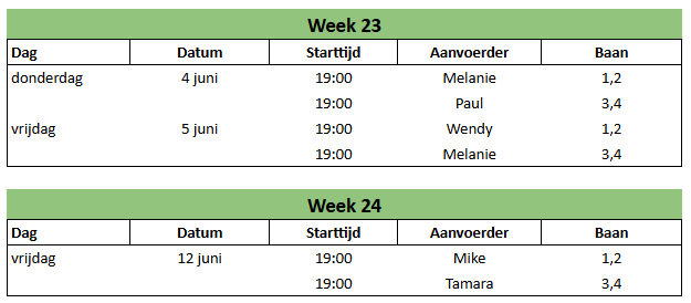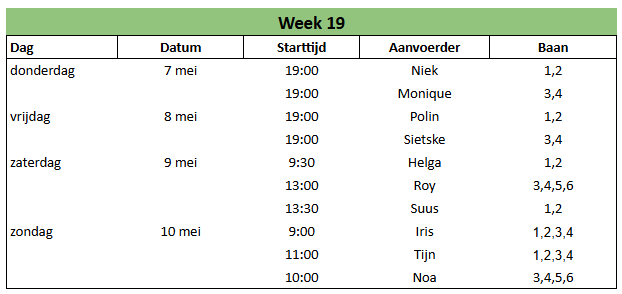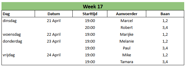 Let op! Onderstaande schema's zijn onder voorbehoud van eventuele wijzigingen tijdens de competitie. Het actuele speelschema vind je in het betreffende weekbericht.