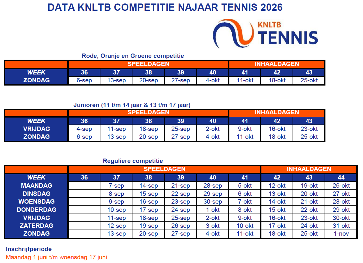 Speeldata KNLTB Najaarscompetitie